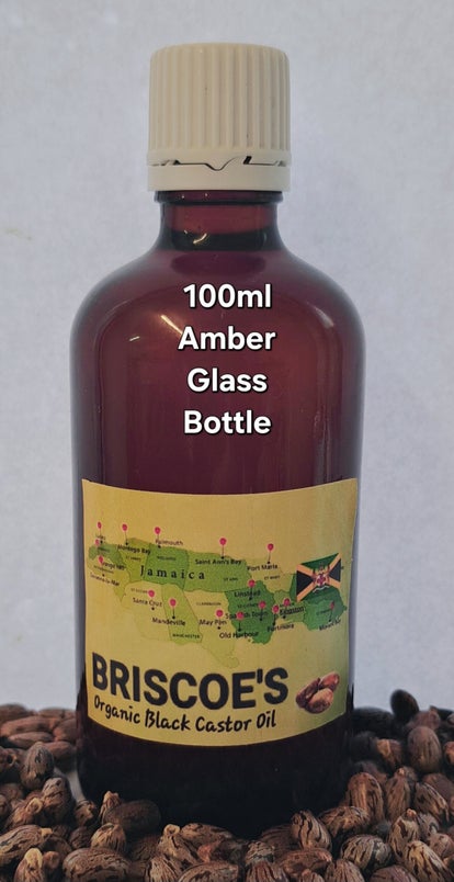 BRISCOE'S ORGANIC VEGAN JAMAICAN BLACK CASTOR OIL 100ml Amber glass bottle.