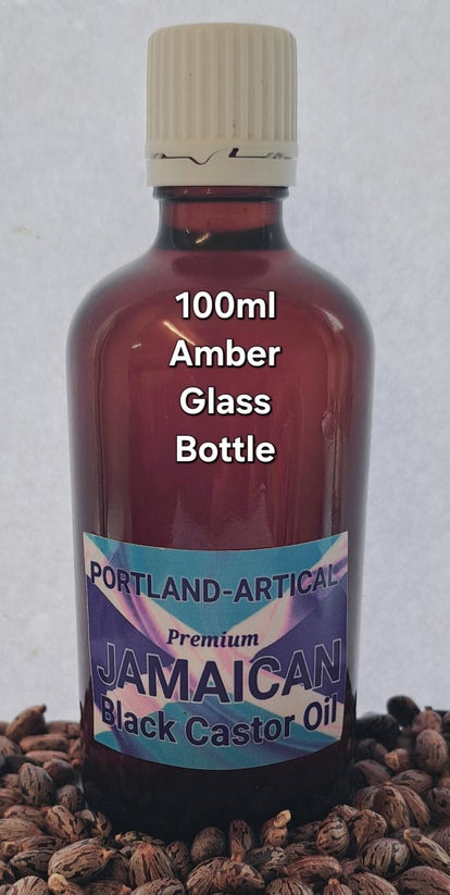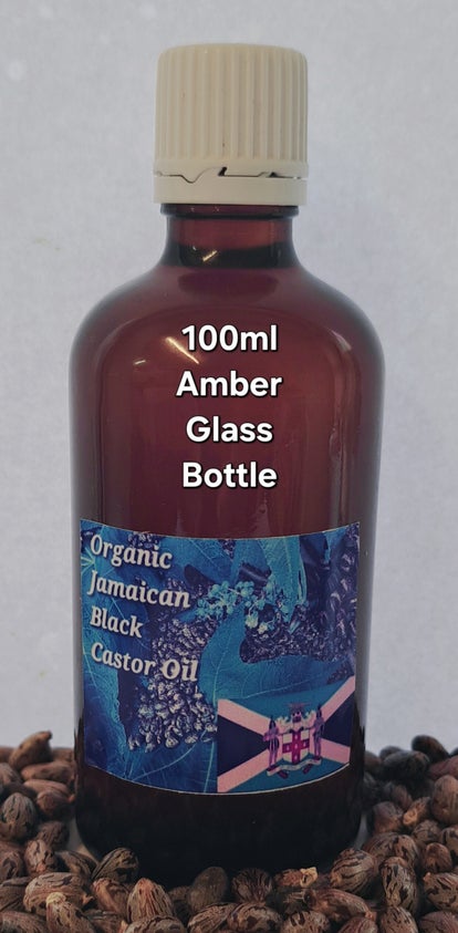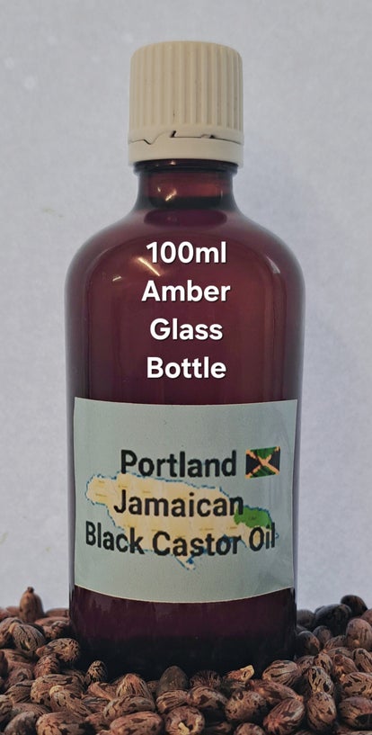 JAMAICAN MULIPURPOSE POTENT ORGANIC BLACK CASTOR OIL 100ml AMBER GLASS BOTTLE.